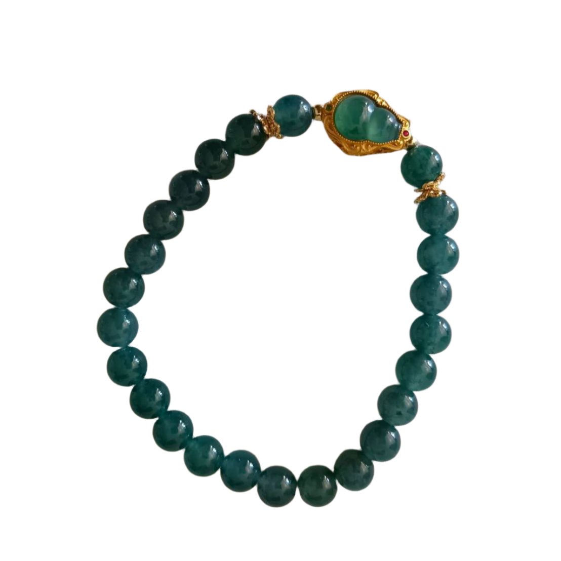 [Little Jade Pavilion] #743 Natural Translucent Guatemala Jadeite, Designer's Bead Bracelet, 7 mm