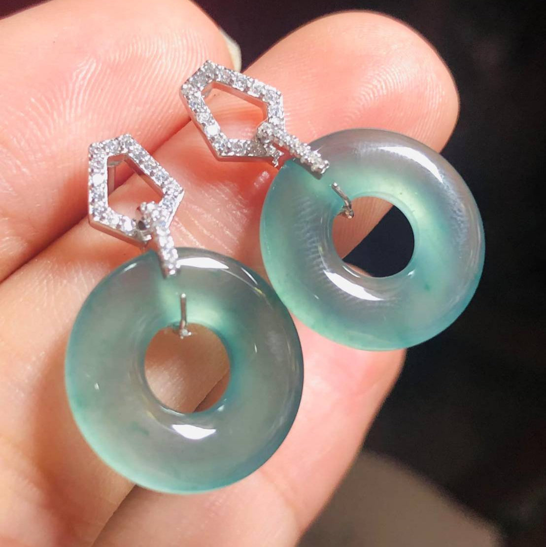 [Little Jade Pavilion] #967 Type A Natural Jadeite, Sterling Silver 925 CZ Donut Earrings 🍩