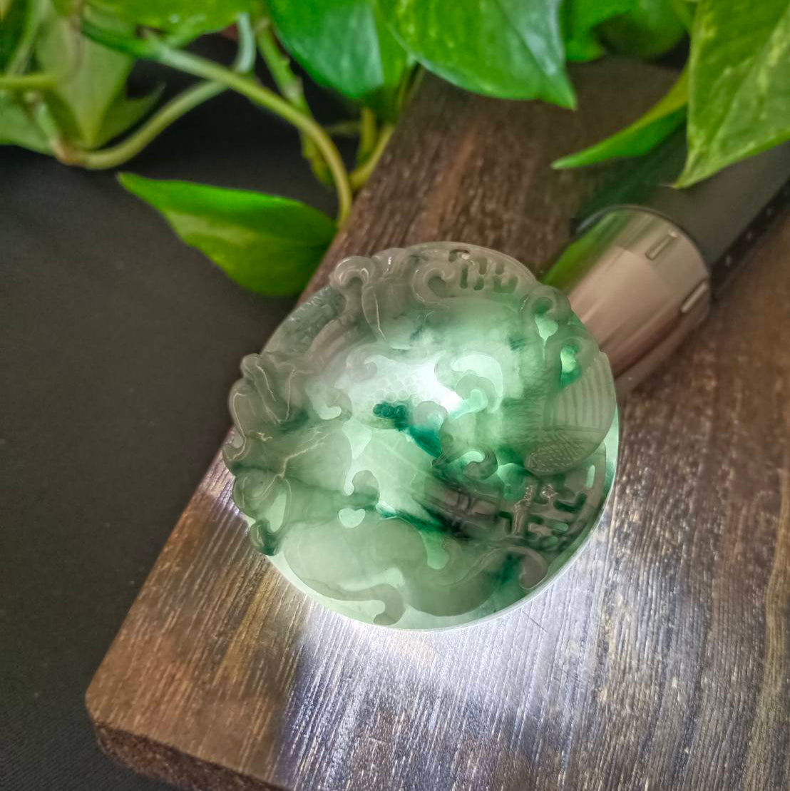 Whether worn as a protective talisman, displayed as an heirloom, or collected as a one-of-a-kind treasure, this Dragon & Phoenix Carved Jadeite Bangle with Core Set embodies both elegance and auspicious symbolism.