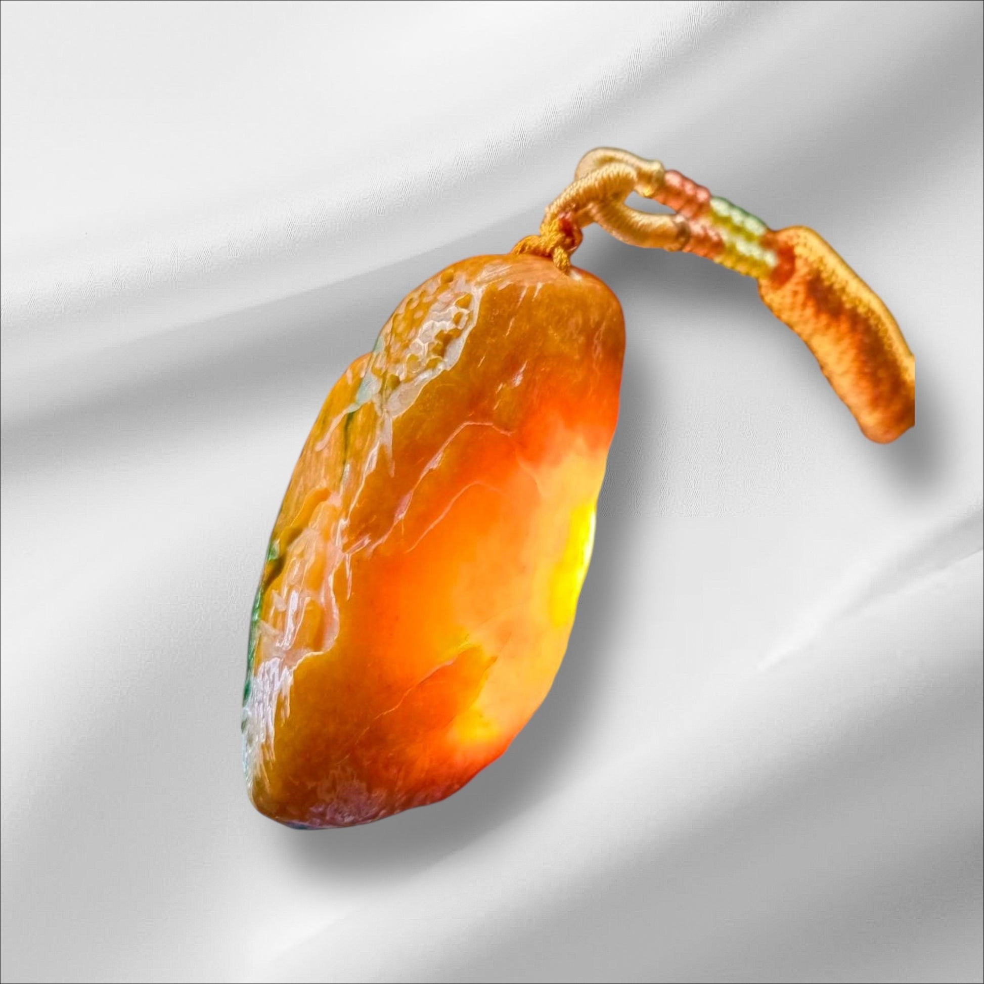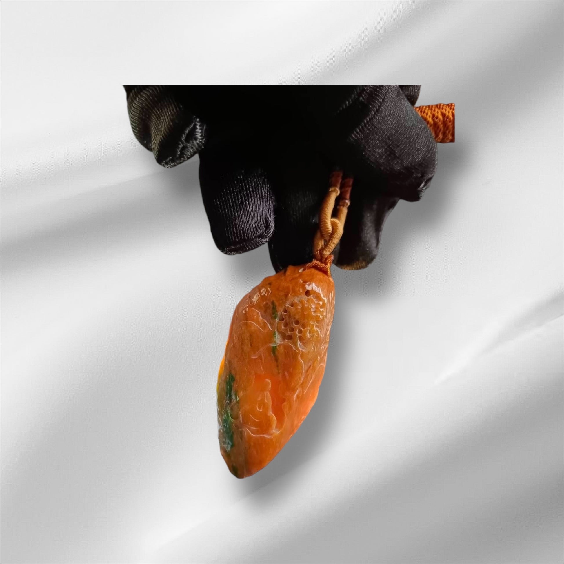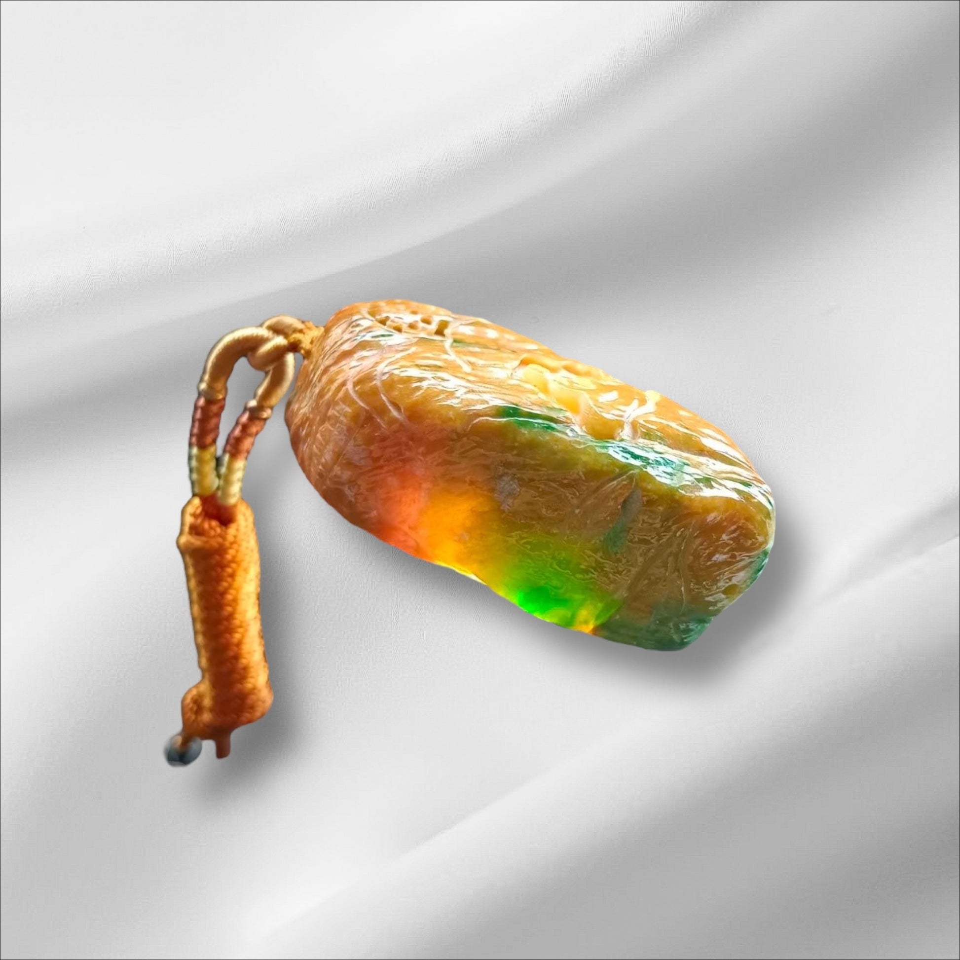 Introducing #880, the Green and Yellow Burmese Jadeite Enlightenment Pendant – an exquisite fusion of vibrant colors and meaningful artistry, crafted for the discerning collector. This stunning pendant features rich hues of yellow and green, set against a translucent jadeite background, giving it a mystical and glowing aura that exudes both beauty and depth.
