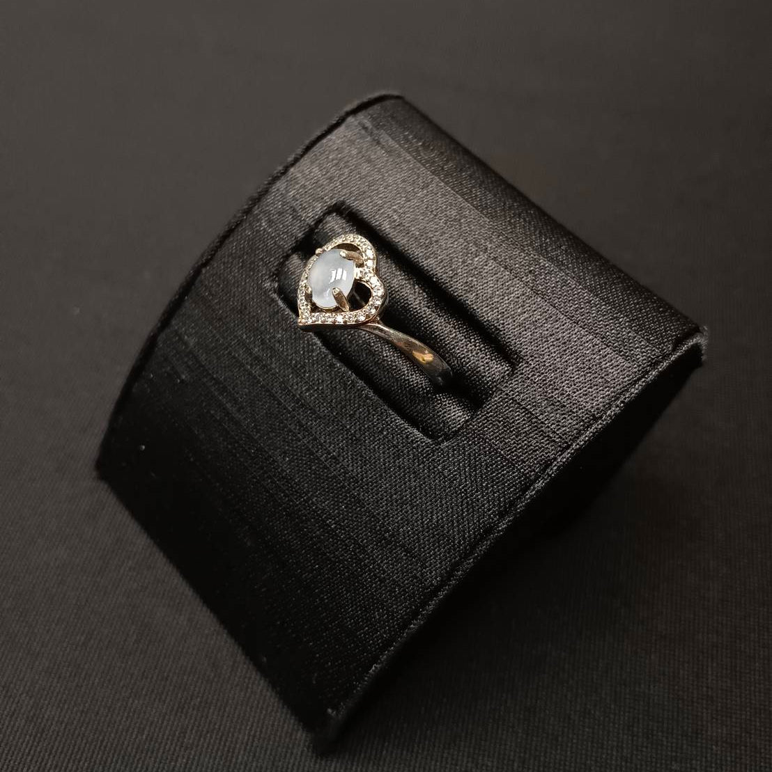 [Little Jade Pavilion] #978 Natural White Jadeite, Sterling Silver 925 CZ Setting, Heart-Shape Ring 💙