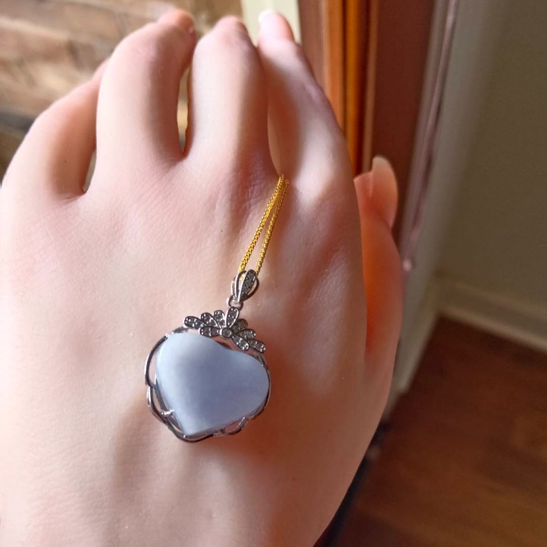 These heart-shaped pendants are not only stylish but also carry a deeper meaning, symbolizing love, harmony, and spiritual growth. Crafted from high-quality Burma Jadeite Jade, known for its exceptional clarity and vibrant colors, each pendant is a testament to superior craftsmanship and attention to detail.