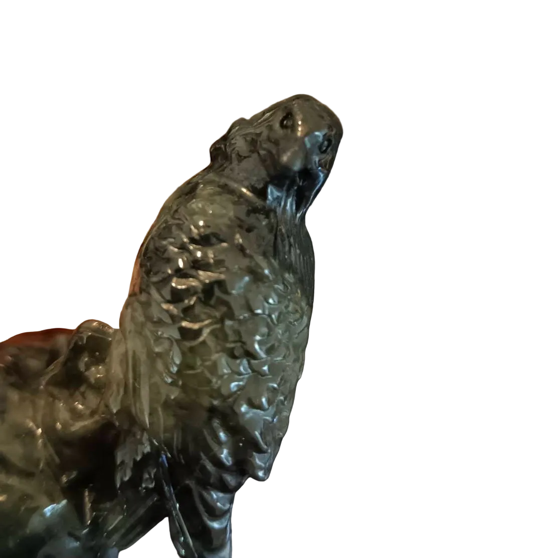 #58 Mason-Kay Certified Green and Black Burma Jadeite Jade Hawk Figurine